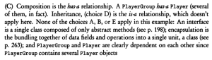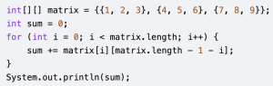 0% 0 votes, 0 avg 28 1234567891011121314151617181920 This quiz randomly generates 20 questions as asked in AP Computer Science A (AP CSA) - Programming in Java. Congratulations! AP Computer Science A (AP CSA) - Programming in Java This quiz randomly generates 20 questions (in 30 mins) as asked in AP Computer Science A (AP CSA) - Programming in Java. 1 / 20 Which of the following expressions is equivalent to !(x < 5 && y >= 10)? x >= 5 || y < 10 x >= 5 && y < 10 x > 5 || y <= 10 x > 5 && y < 10 A: This is De Morgan’s Law. You negate x < 5 (which becomes x >= 5), negate y >= 10 (which becomes y < 10), and change the && to ||. 2 / 20 What is the output? 10 : 30 : 4 10 : 30 : 5 10 : 30 : 6 Compilation Error 3 / 20 What is the output? An exception is thrown at runtime. 07-31-2014 2014-07-31 2014-09-30 4 / 20 What is the length of the myIntegers array initialized in the code below? int a = 8; a *= 2; a = a * 3 / 5; int[] myArray = new int[a]; for(int i = 0; i < myArray.length; i++) { myArray[i] = i % 4; } 8 9 10 16 int a = 8; -> a is 8 a *= 2; -> a is 8 * 2, which is 16 a = a * 3 / 5; -> a is 16 * 3 / 5, which is 48 / 5. In integer division, this results in a being 9. int[] myArray = new int[a]; -> The array myArray is initialized with a length of 9. 5 / 20 What is the output? 2416 0010010016 2216 4416 6 / 20 Variable x of a double type can be to the nearest integer using which statement? (int)x for both positive and negative values of x. (int)(x + 0.5) for both positive and negative values of x. (int)(x + 0.5) for positive values of x, and (int)(x - 0.5) for negative values of x. (int)(x + 1) for both positive and negative values of x. The correct statement to round a double variable x to the nearest integer is (C) (int)(x + 0.5) for positive values of x, and (int)(x - 0.5) for negative values of x. This is because casting to int truncates the decimal part towards zero, and adding or subtracting 0.5 effectively shifts the value so that values halfway or more from zero are then truncated to the next integer away from zero. 7 / 20 What is the output? Nothing is printed An Exception is thrown Compile Error May 15, 2004 8 / 20 Which statement is true about the switch statement? It must contain the default section. The break statement, at the end of each case block, is optional. Its case label literals can be changed at runtime. Its expression must evaluate to a collection of values. The switch statement in Java provides a way to control program flow by executing different blocks of code based on the value of a single expression. It offers an alternative to using multiple if-else if-else statements, often leading to more readable and concise code for handling multiple conditional branches. 9 / 20 What output will be produced by invoking secondTestMethod for a Tester object, assuming that testArray contains 3, 4, 5? 3 4 5 4 5 6 5 6 7 0 0 0 No output will be produced. An ArrayIndexOutDfBoundsException will be thrown. The array will not be changed by the increment method. Nor will the local variable element! What will be changed by increment is the copy of the parameter during each pass through the loop. 10 / 20 What is the output? 4W 100 Auto 4W 150 Manual null 0 Auto 4W 150 Manual Compilation fails only at line n1 Compilation fails only at line n2 Compilation fails at both line n1 and line n2 Java do not allow super() and this() to be called concurrently in the same constructor. super() means calling the constructor from the parent class. this() means calling another constructor within your own class. 11 / 20 Consider the following code segment. What will be printed? 15 12 25 18 A (15): The loop accesses matrix[0][2] (3), matrix[1][1] (5), and matrix[2][0] (7). The sum i 3+5+7=15, 3 plus 5 plus 7 equals 15 3+5+7=15. 12 / 20 What is the output? The sum of dice1 and dice2 No output Error No Double The code simulates rolling two dice and calculates their sum. If the dice values are not equal, it prints the sum. If the sum is 7, it also prints the sum. Otherwise, it prints 'No Double'. 13 / 20 Which of the following are true about arrays? I. All of the elements inside of an array must be of the same type or related types. II. When creating an array with the keyword new, booleans are initialized to True. III. The first element of an array is located at the index of 1. I only II only I and II II and III I, II, and III Statement I is true. Arrays in Java are homogeneous, meaning all elements must be of the same data type or related types (e.g., subclasses of a common parent class or an array of Object can hold different types of objects, but they are all treated as Object references). Statement II is false. When an array of booleans is created using the new keyword, all elements are automatically initialized to their default value, which for booleans is false, not True. Statement III is false. Array indices in Java, and most programming languages, are 0-based. This means the first element of an array is located at the index of 0, not 1. 14 / 20 Question The relationship between the PlayerGroup and Player classes is an example of: an interface. encapsulation. composition. inheritance. independent classes. 15 / 20 In Java, Which of the following data types would NOT be considered a primitive data type? String Boolean Integer Long String is not a primitive data type in Java; it is a reference type (specifically, a class in the java.lang package) used to represent a sequence of characters. Primitive data types are basic types that hold simple values directly in memory and do not have methods associated with them. Java has exactly eight primitive data types: byte, short, int, long, float, double, boolean, and char. 16 / 20 What is the output? [1, 2, 3] [1, 3, 4] [2, 3, 4] Compilation fails [3, 4, null] 17 / 20 What value is stored in result if -5 0 13 -1 12 18 / 20 The +=, -=, *=, /=, and %= operators are known as _______ operators. covalent assignment shorthand assignment compound assignment increment assig